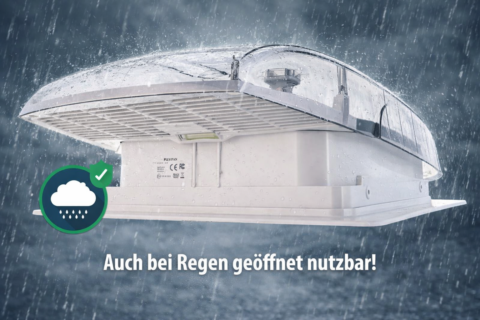 Allwetter-Betrieb: Effektive Belüftung (Zu- und Abluft) ist sogar bei geschlossenem Deckel möglich.